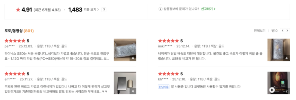 둘째, 가격대가 아주 저렴하진 않습니다. DRAM이 없는 보급형 모델들에 비하면 몇만 원 더 비싼 편이에요. 하지만 내 소중한 데이터를 저장하는 금고라고 생각하면, 안정성이 검증된 하이닉스 정품을 쓰는 게 오히려 가성비가 좋다고 판단했습니다.