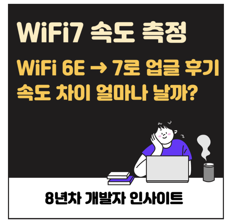 사실 무선속도도 200MB/s 정도는 나와줄거로 기대했는데 생각보다는 속도가 낮게 나와서 아쉽더라고요. 이번 포스팅에서는 글에서는 왜 이런 차이가 났는지, 그렇다면 어디까지 더 끌어올릴 수 있는지, 그리고 Wi-Fi 7은 정확히 어떤 기술인지 8년차 개발자 시선에서 최대한 쉽게 풀어보겠습니다.