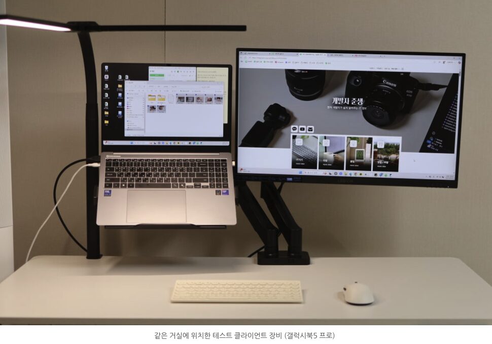 테스트한 클라이언트는 갤럭시북5 프로(2×2 안테나)로, 같은 방·같은 거리에서 라우터만 교체해 측정했습니다.